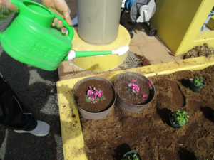 最後に花壇にお水をあげて「可愛く咲いてね」と花壇の花にお声かけ(*´▽`*)