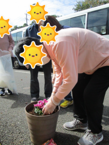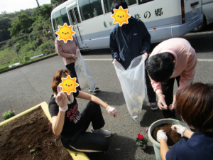 秋晴れで気持ちのいい陽気の中、利用者様と一緒に花壇の整備をしました(*^-^*)