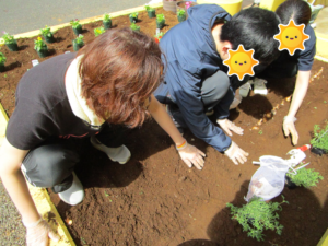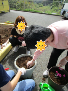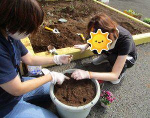 職員と一緒に植えていきます😊