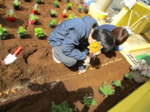 球根の上に土を被せ「綺麗に咲きますように」と願いを込めながら作業をしました(*^▽^*)