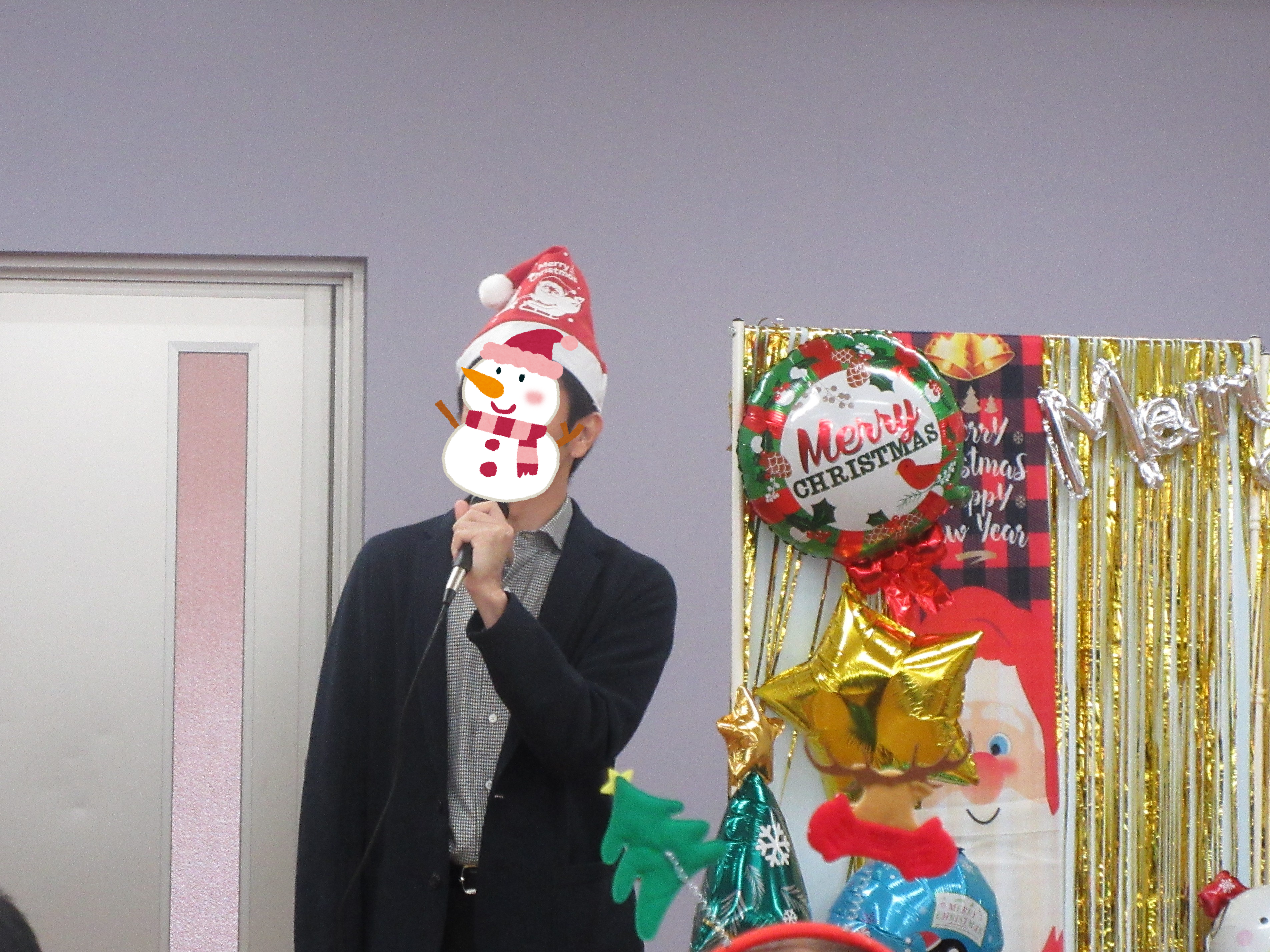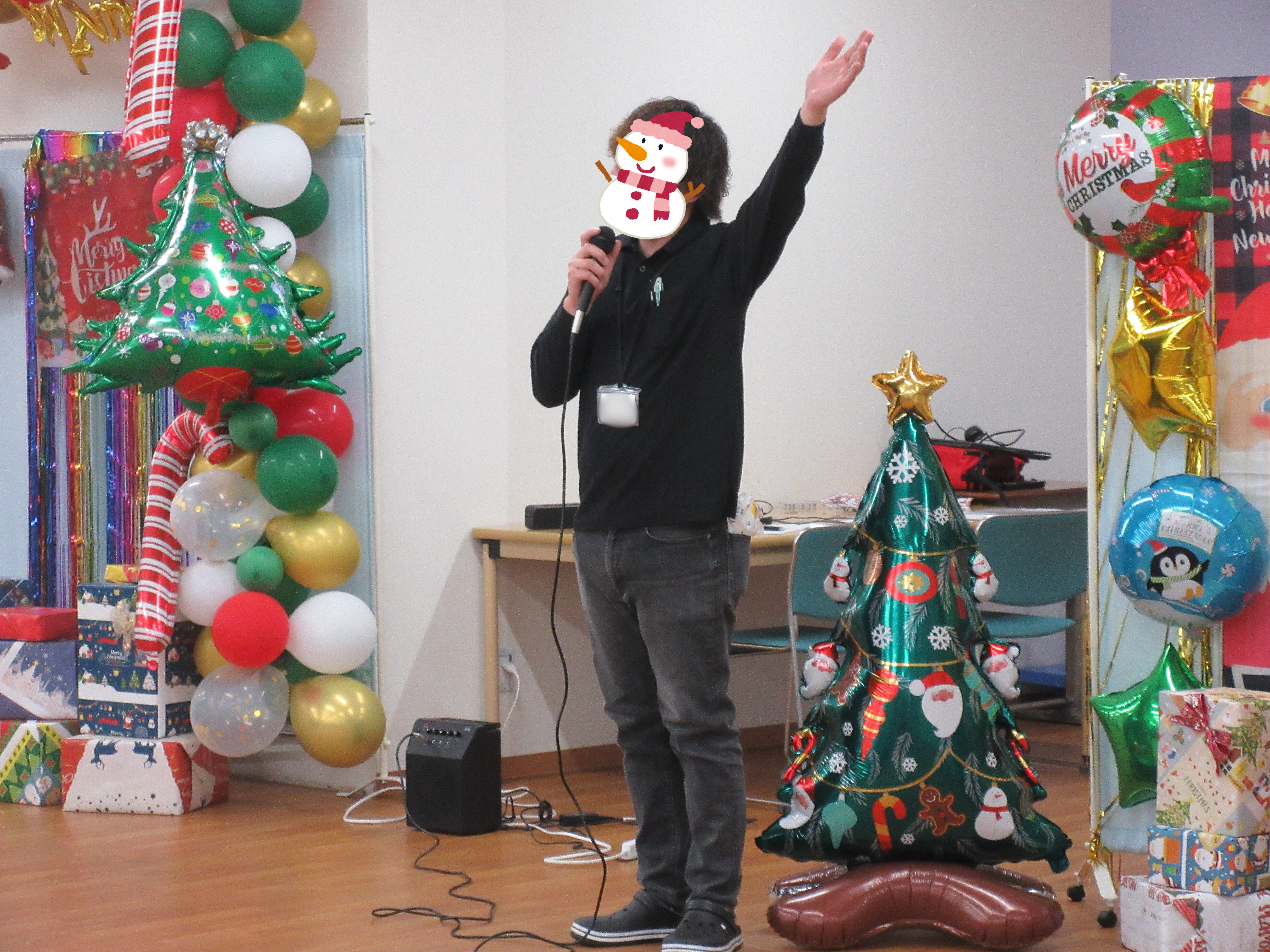 おや!?プレゼント配りでは、なんだか怪しげなサングラス姿のサンタさんが登場です🎅(笑)