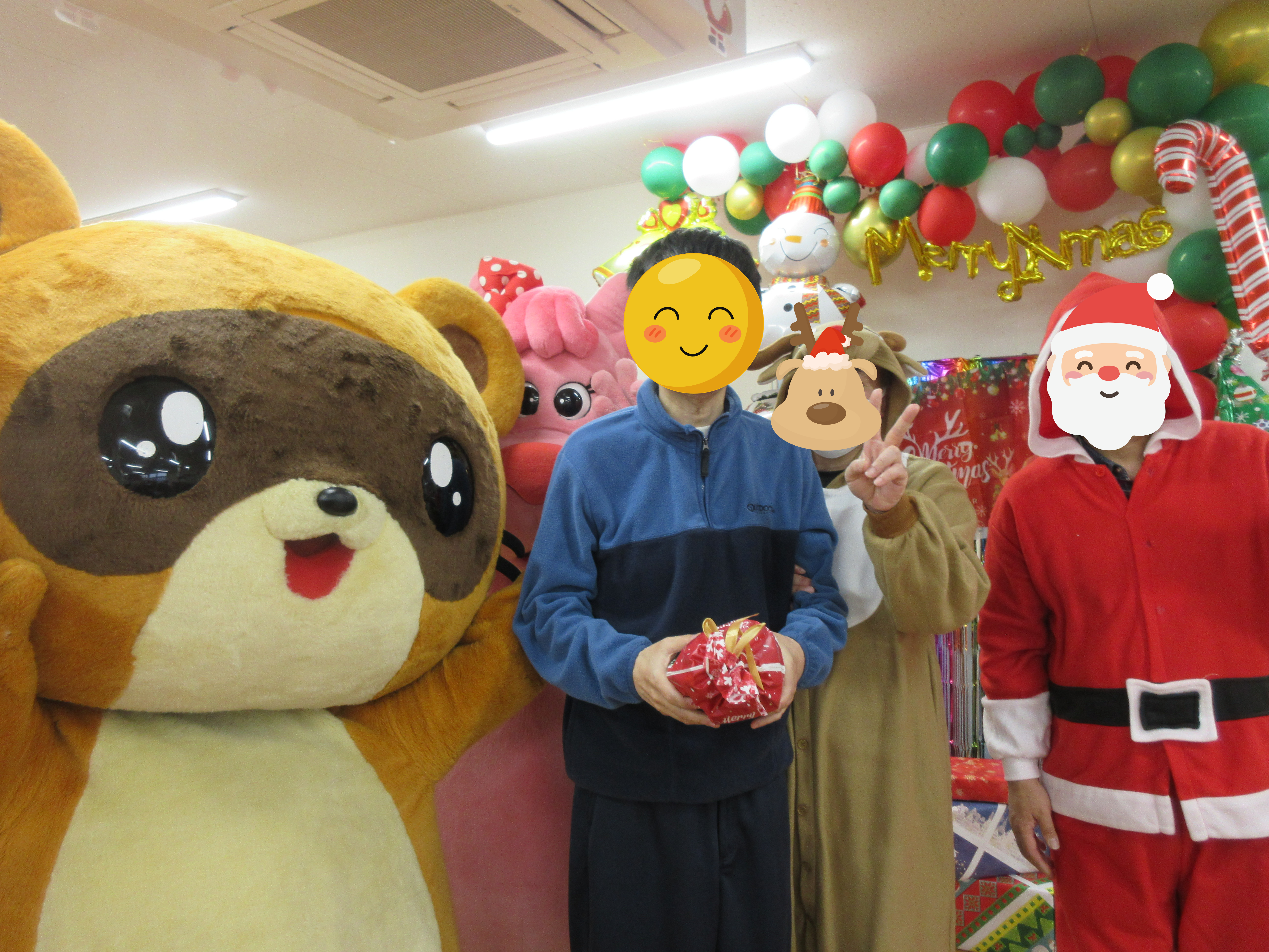 見事、ビンゴした利用者様はサンタやトナカイ、きさポン、ソデリーと記念撮影📸