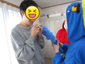 鬼を女性職員がやったからか男性利用者様は心なしか優しく退治してくれました(*^-^*)