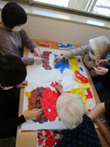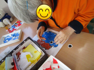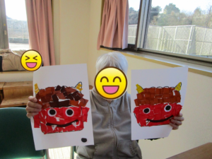 日中活動では節分に向けて鬼の貼り絵をしました👹
