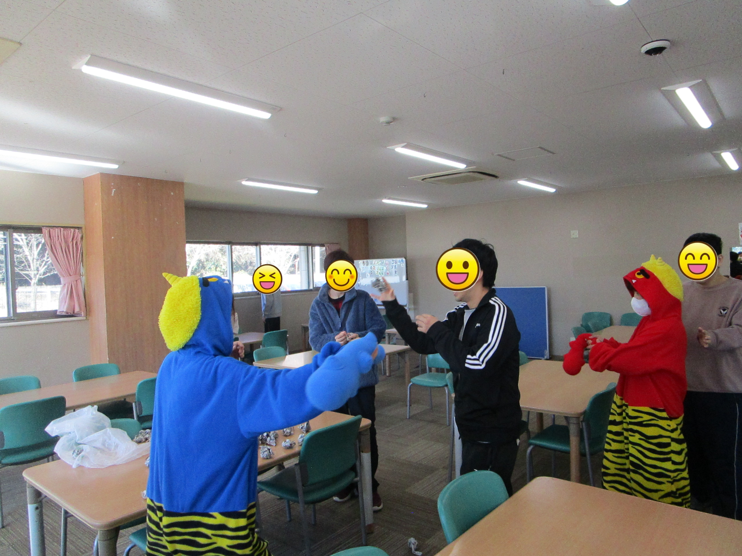 新聞紙ボールを投げ「鬼は~外!!福は~内!!」