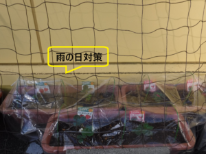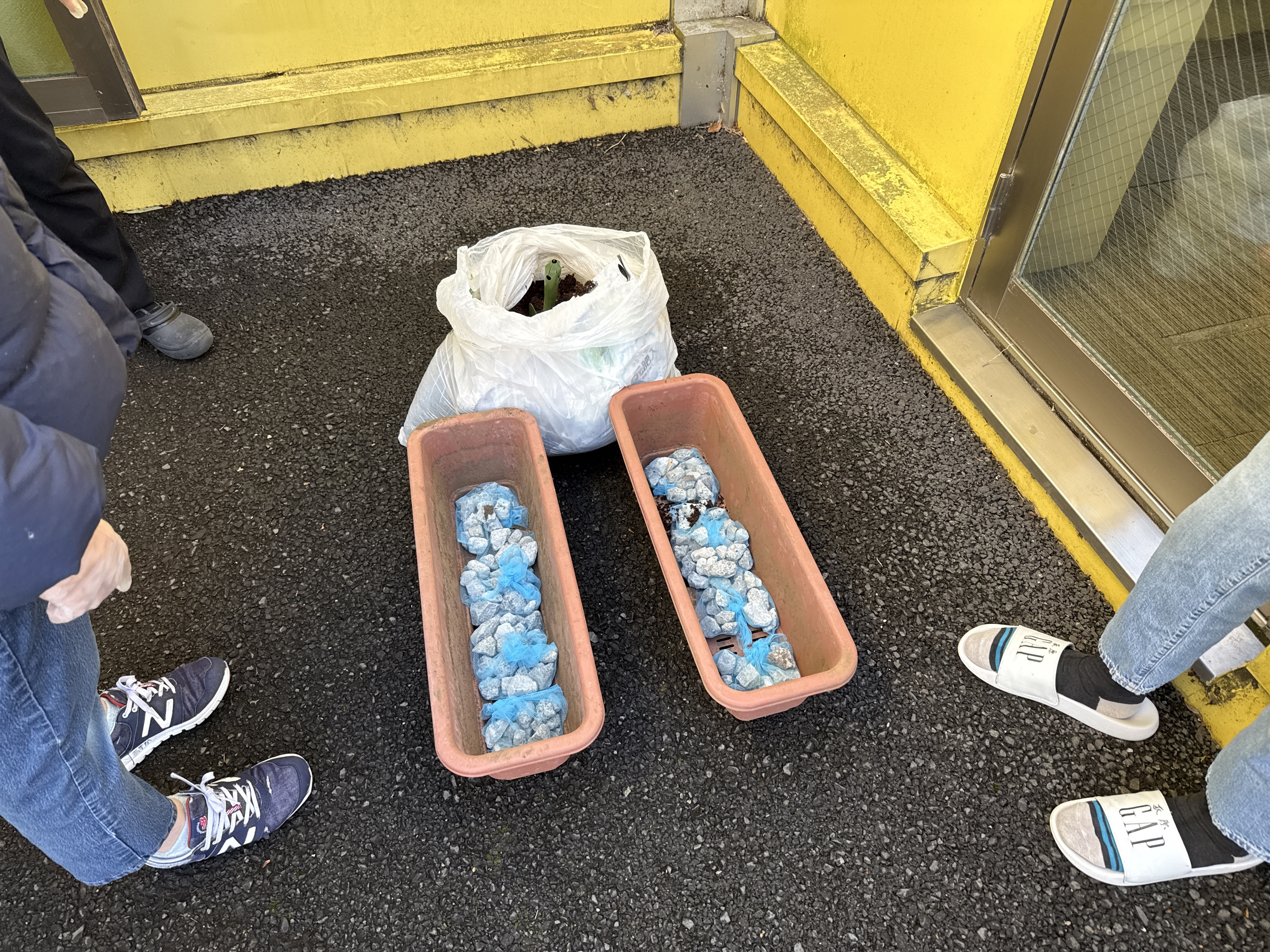 プランターに砂利を敷いて