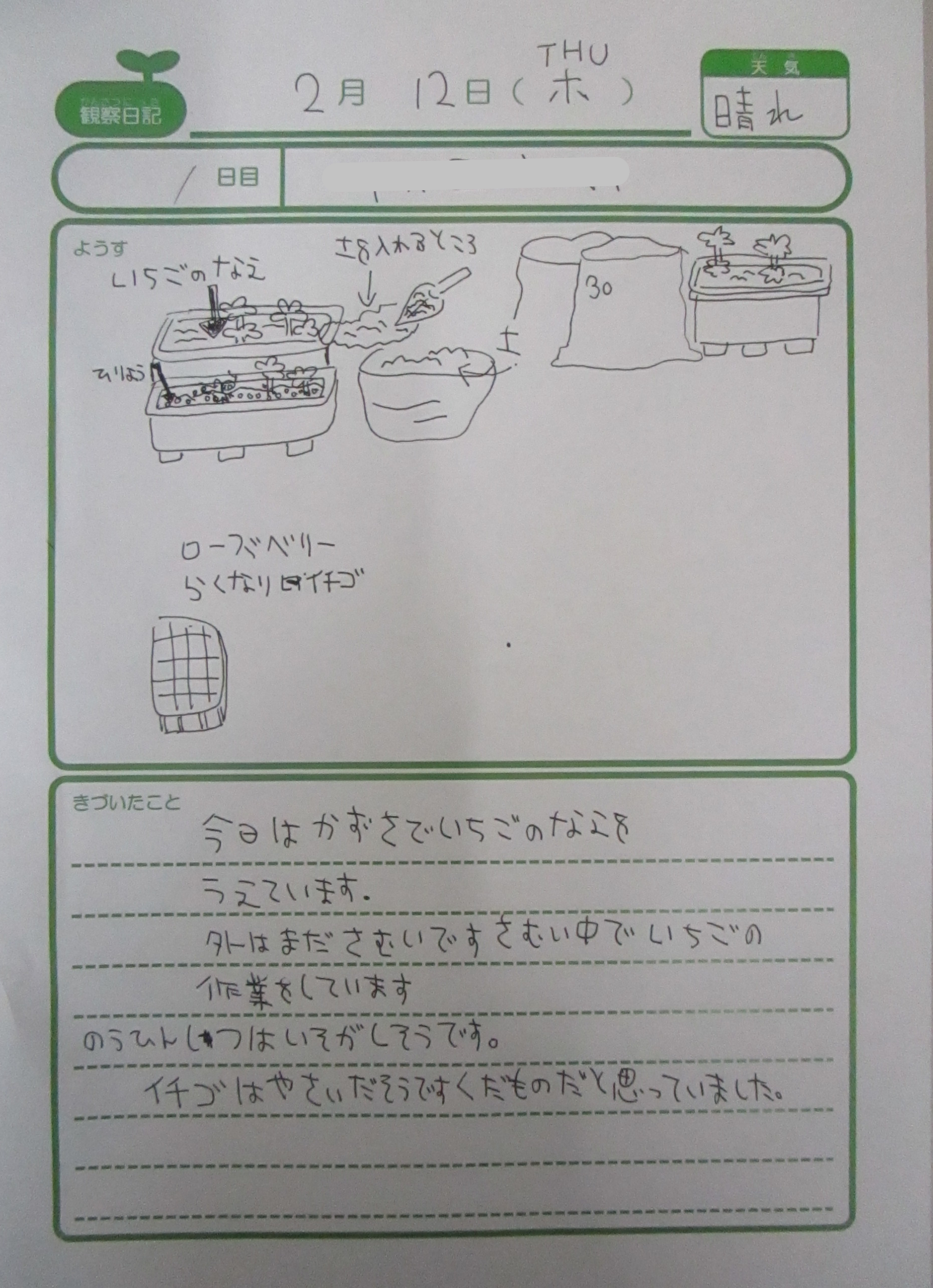 イチゴの成長が楽しみですね(*^-^*)