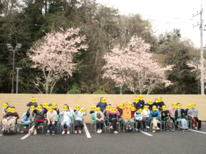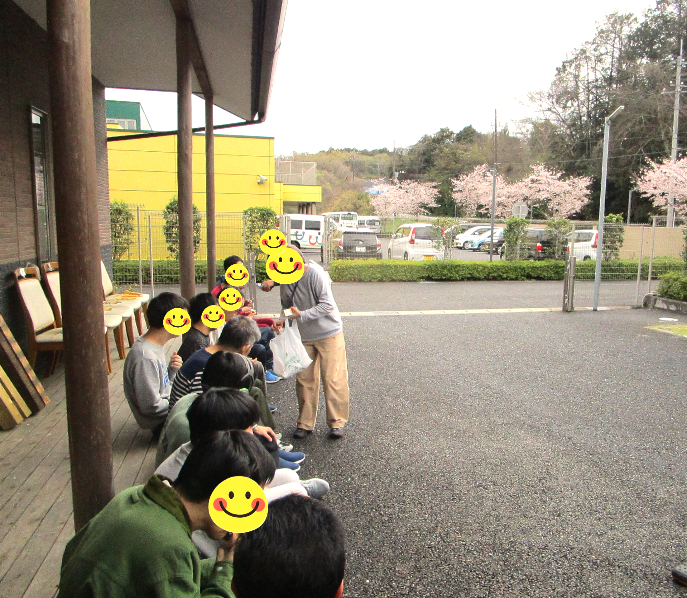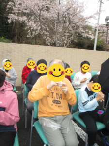 スマイル班の皆さんは縁側に座りお花見おやつタイムをしました🌸