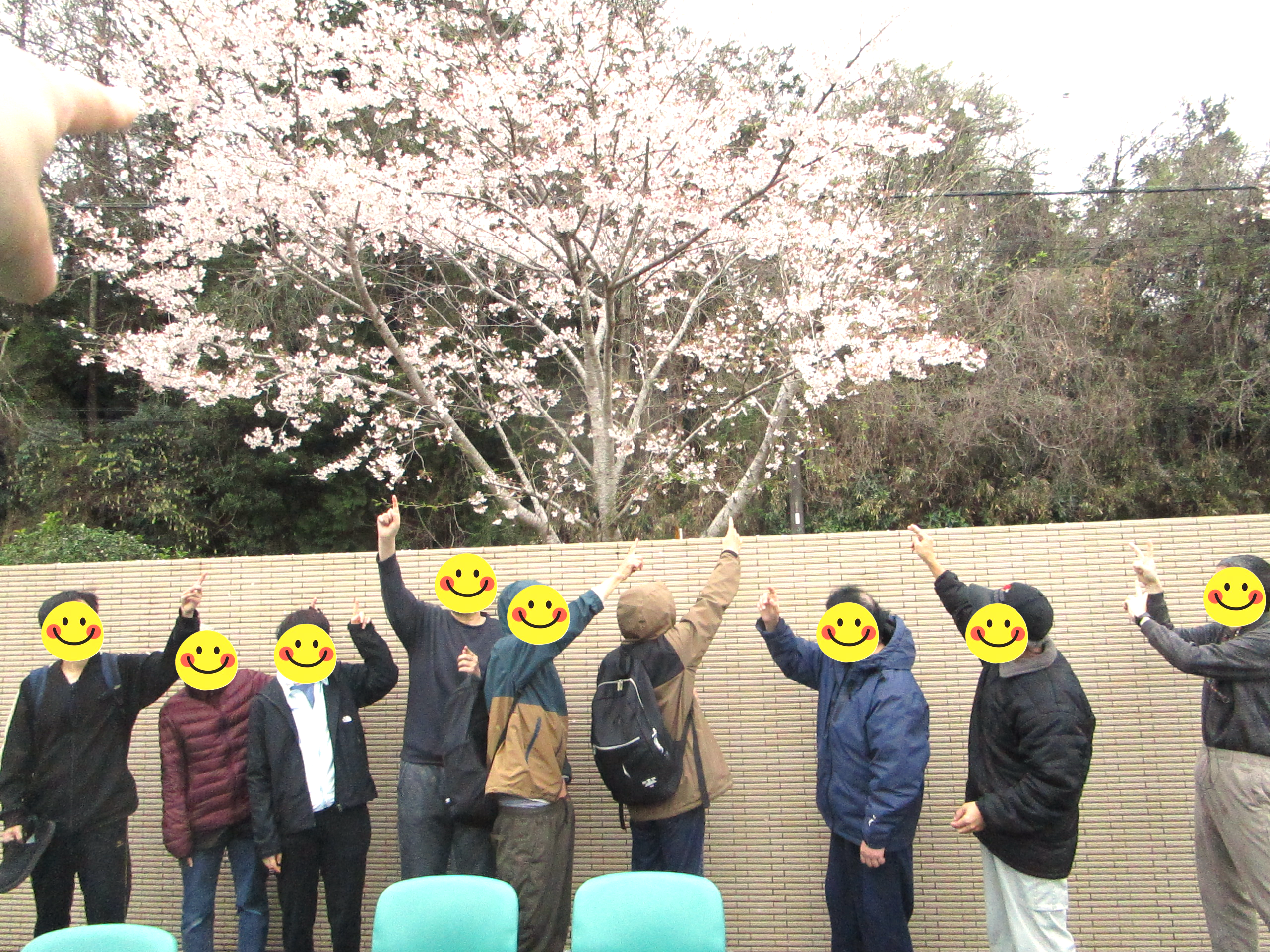 桜を指差し記念撮影📷