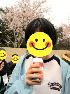 桜の木の前でおやつとジュースを楽しみました🍹